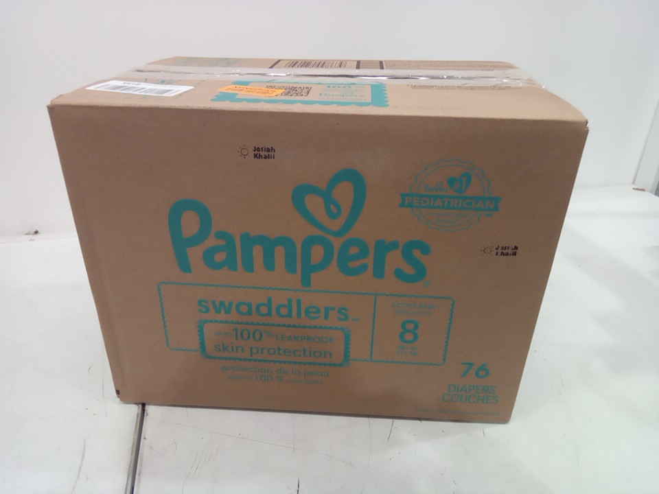 76PK PAMPERS SWADDLERS DISPOSABLE BABY DIAPERS - SIZE 8 - WHITE