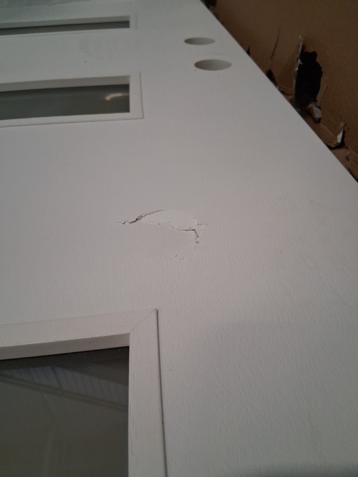 Puncture in door, couple of scuffs.