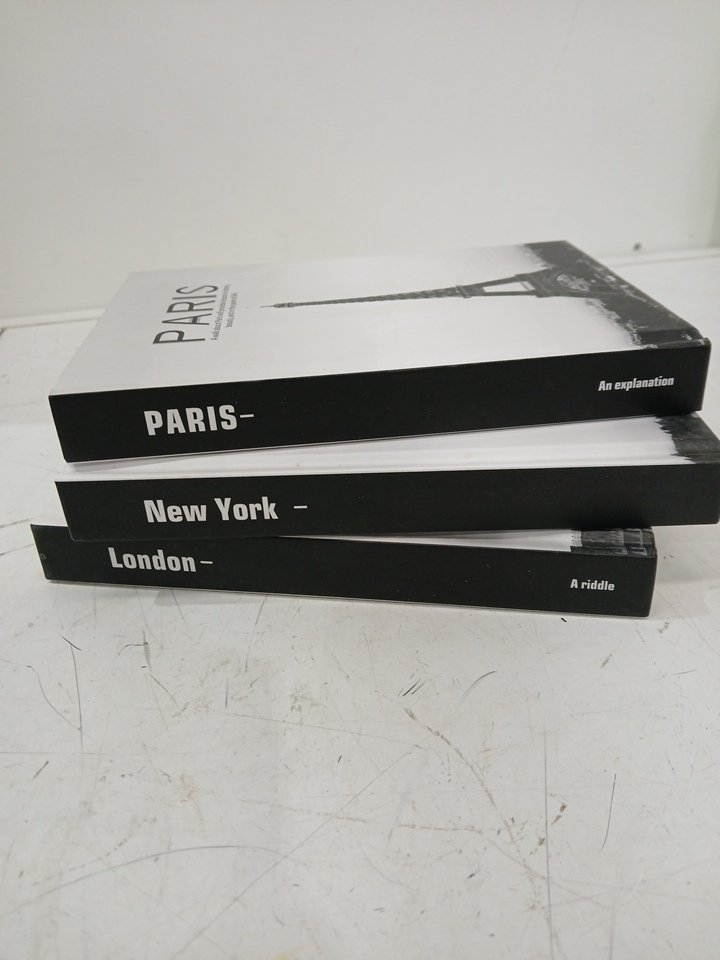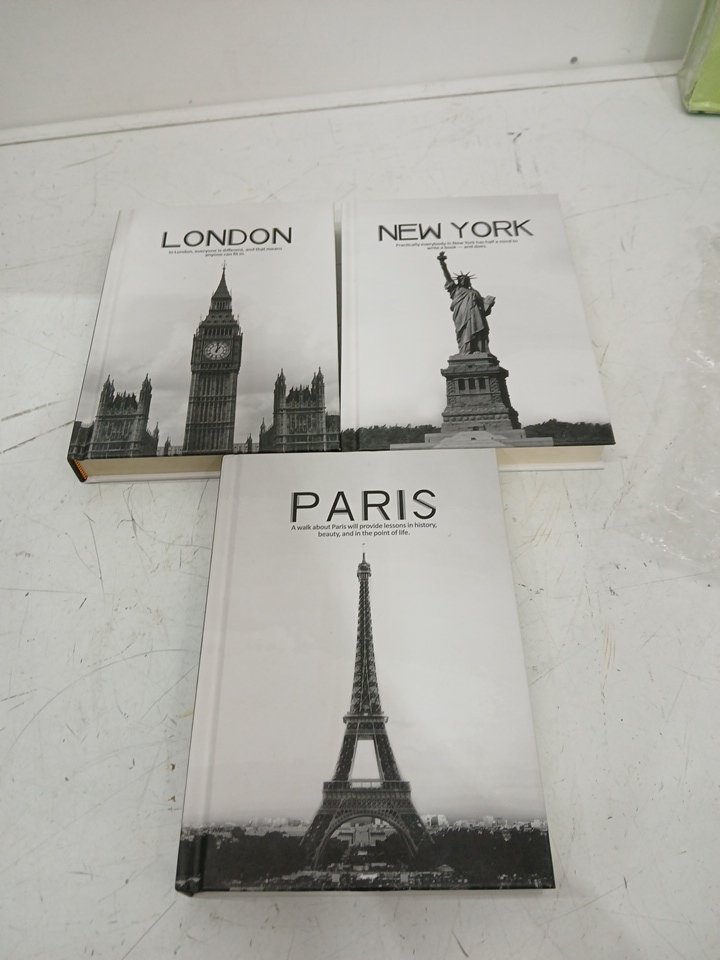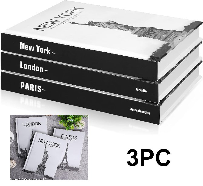 3pc Hardcover Fashion Decorative Books, with Blank Pages - black white