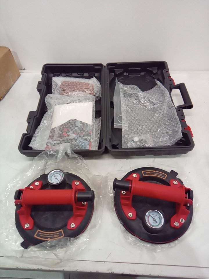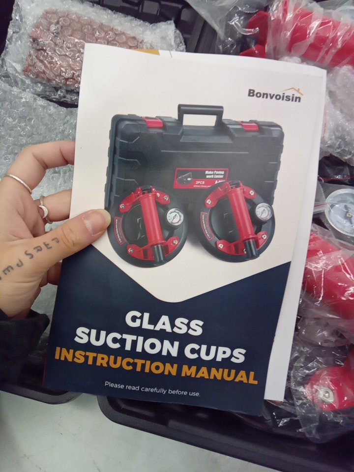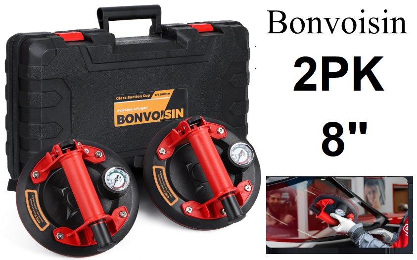 2pk Bonvoisin 8" Glass Suction Cups to Lift Large Glass with Pressure Gauge - 330lbs max - red\black