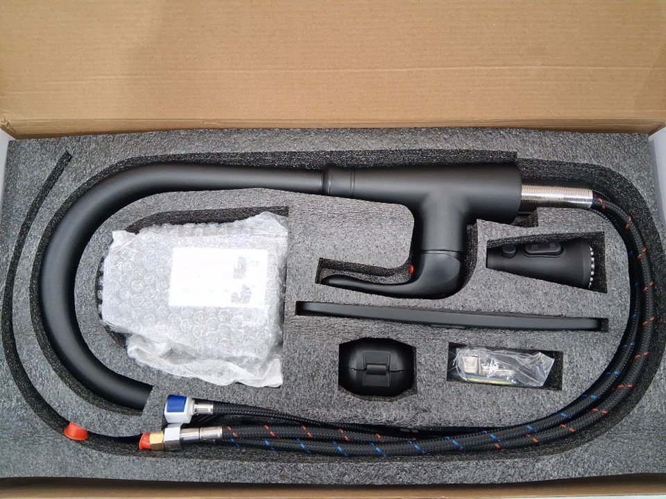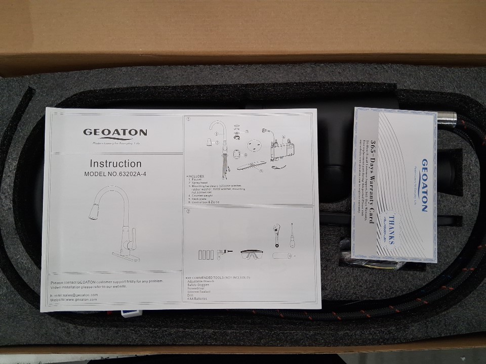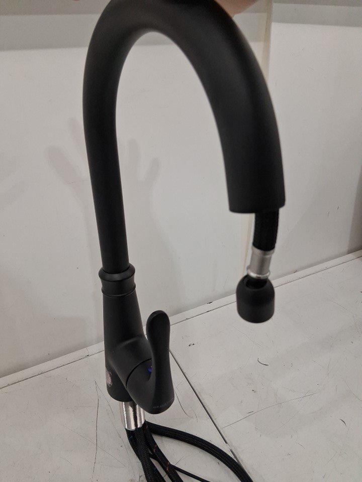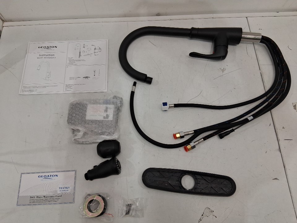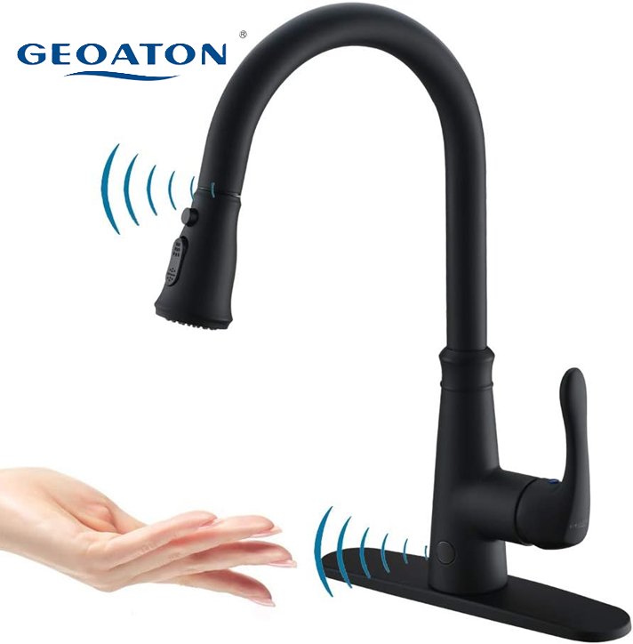 Geoaton Touchless High Arc Kitchen Copper Faucet with Pulldown Sprayer - Black (Model: ‎GT-D01)