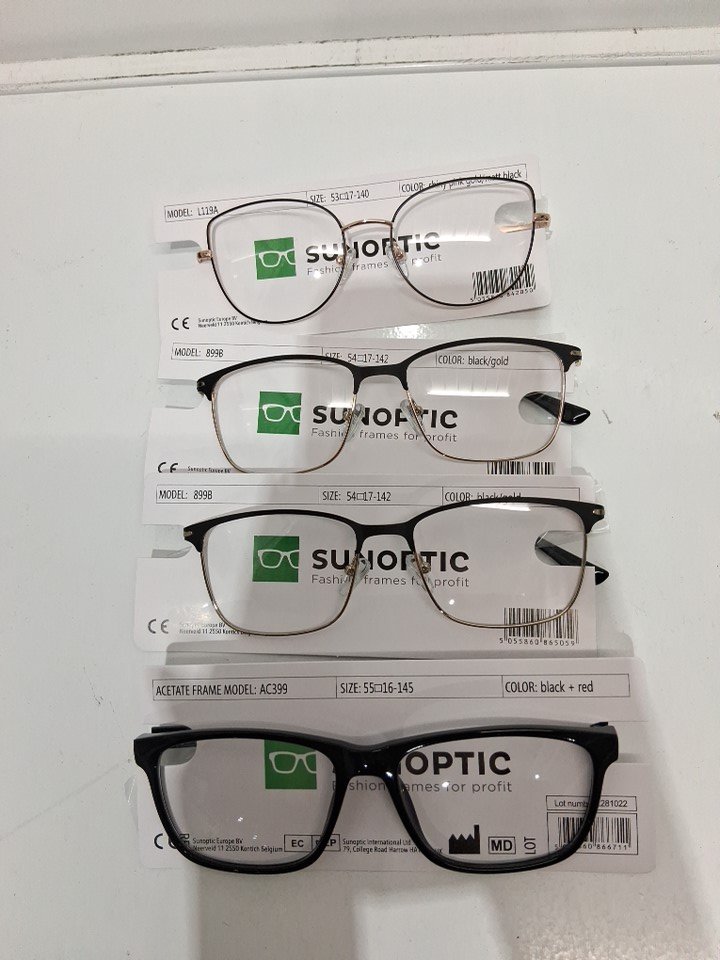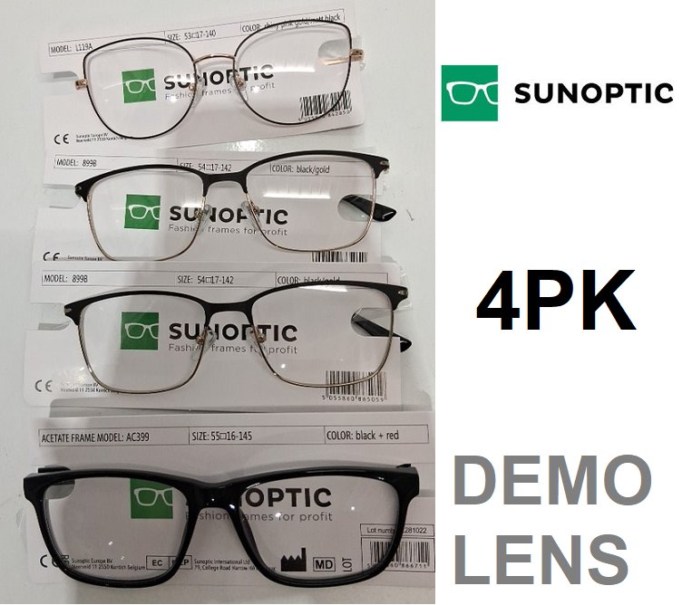 4PK UNISEX SUNOPTIC DEMO LENS METAL/PLASTIC FRAME GLASSES - ASSORTED COLOURS/SHAPES