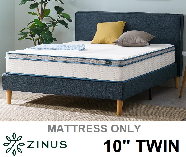 zinus 10" foam & spring hybrid mattress - twin - white (model: zu-mssa1izi-10t)