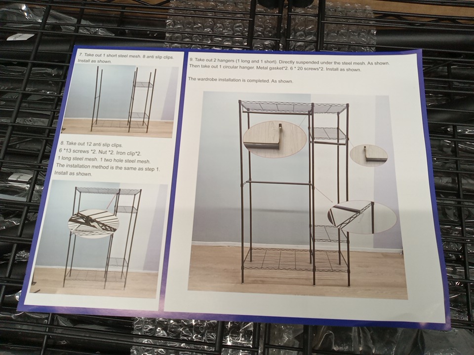 asdjakzp heavy duty 4-Tiers Adjustable Wire Shelving Clothes Rack with 3 Hanging Rods and Shelves - black (model: ‎0Z01-623-Q4R2)