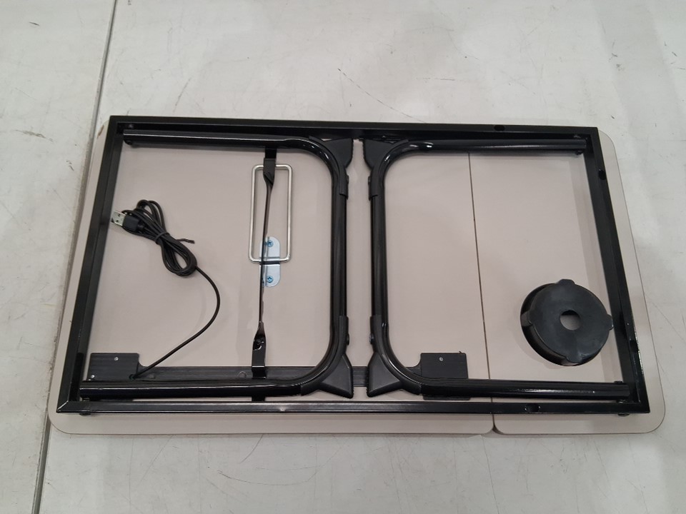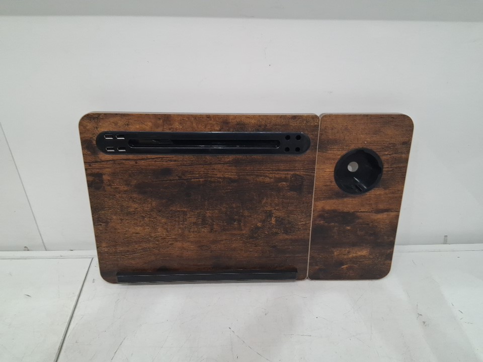 Adjustable Laptop lap desk Stand for bed floor sofa couch with usb charging ports and cup holder - 25" x 12.5" x 9.8" - black/dark brown