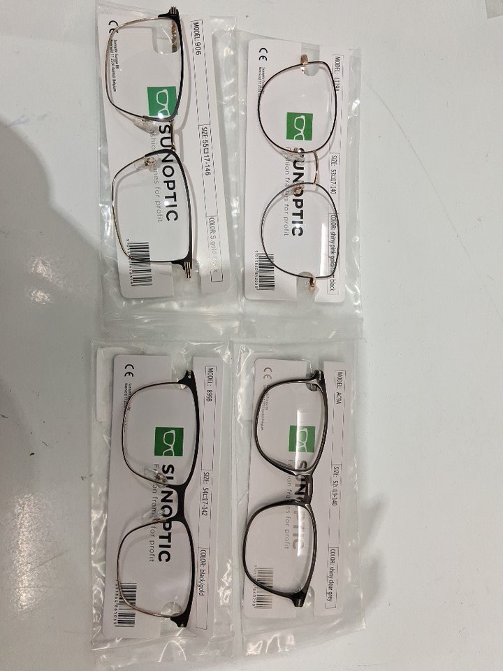4PK UNISEX SUNOPTIC DEMO LENS METAL/PLASTIC FRAME GLASSES - ASSORTED COLOURS/SHAPES