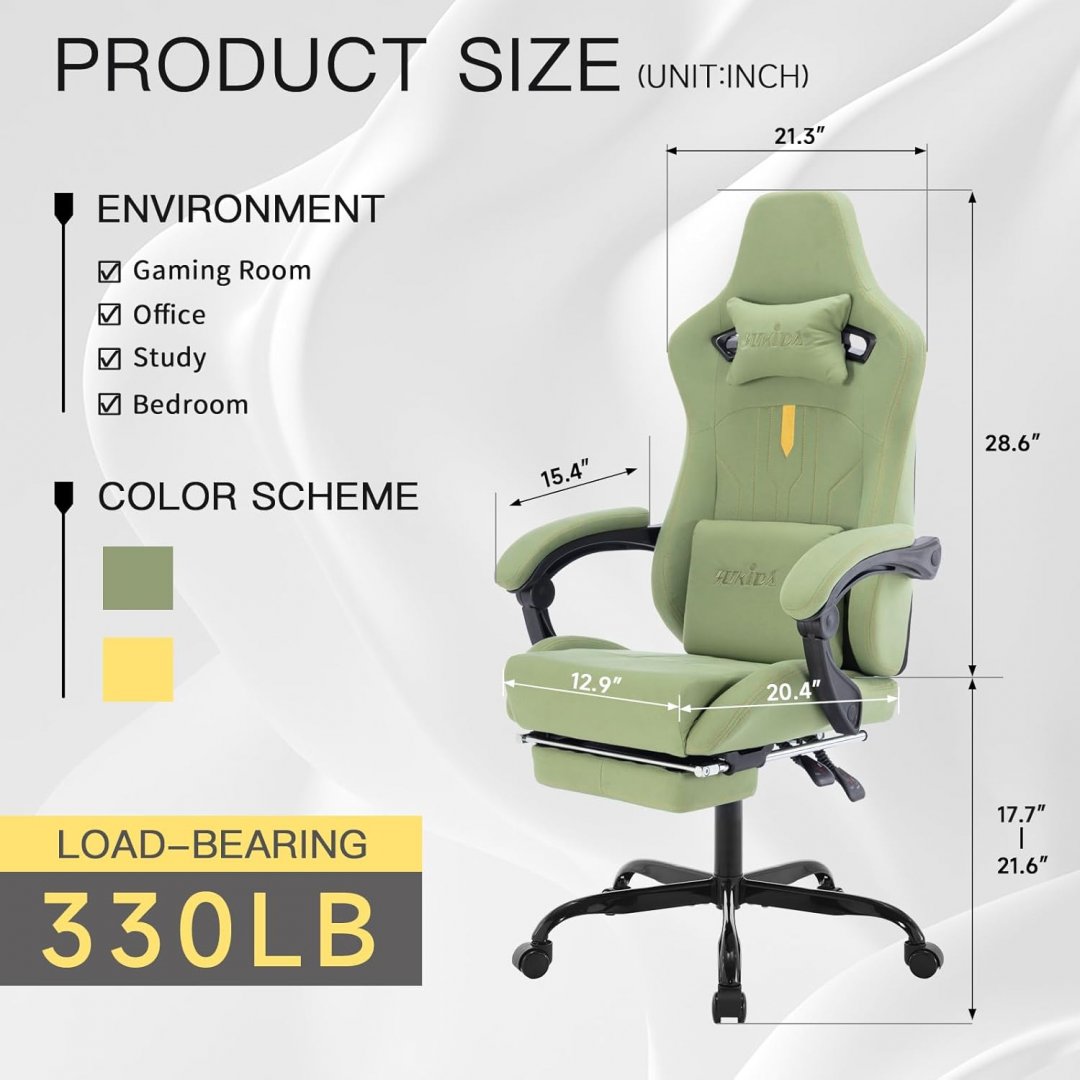 sukida pu leather Ergonomic recliner Computer gaming chair with footrest and massage lumbar cushion - up to 330lbs - green (model: 306)