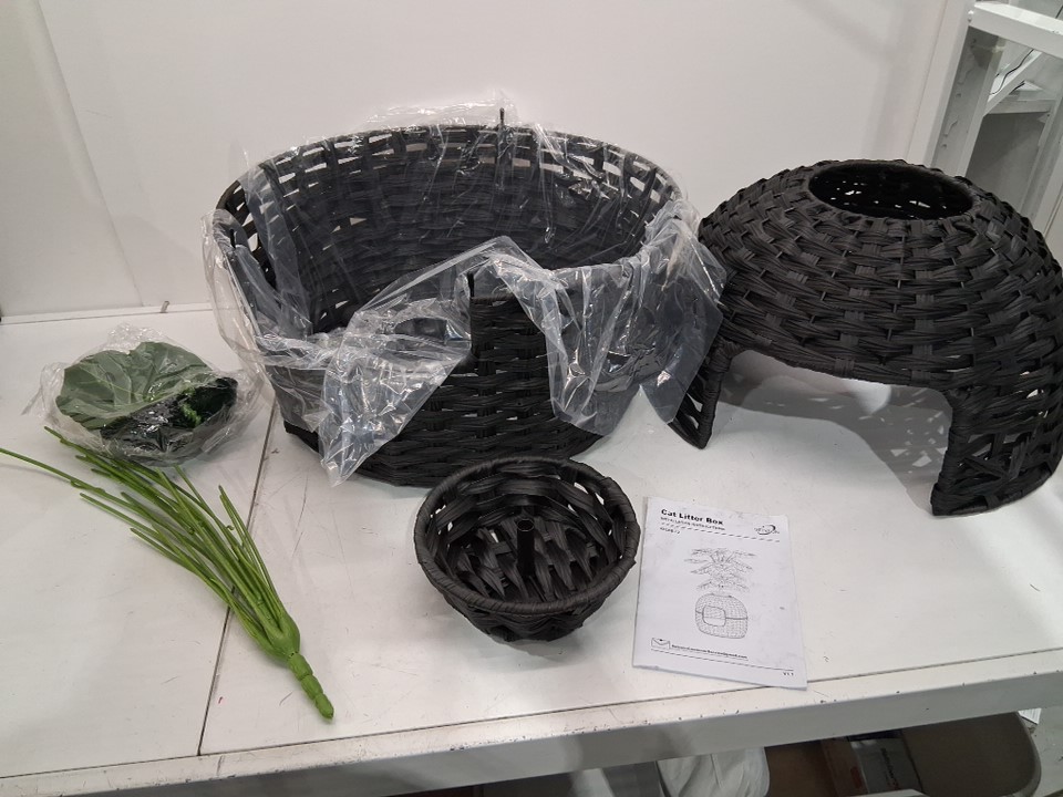 SETVSON WICKER Plant Furniture Cat Litter Box Enclosure with artificial plants - 20" X 20" X 40" - black (MODEL:XHLBE-12-Bk)