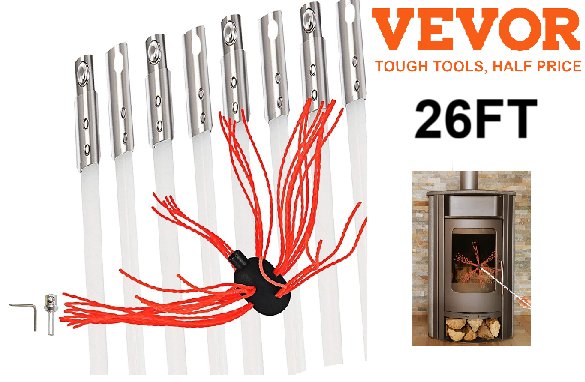 VEVOR drill powered Chimney Sweep Kit with 8 nylon flexible rods - 26ft - (model: 8rod)
