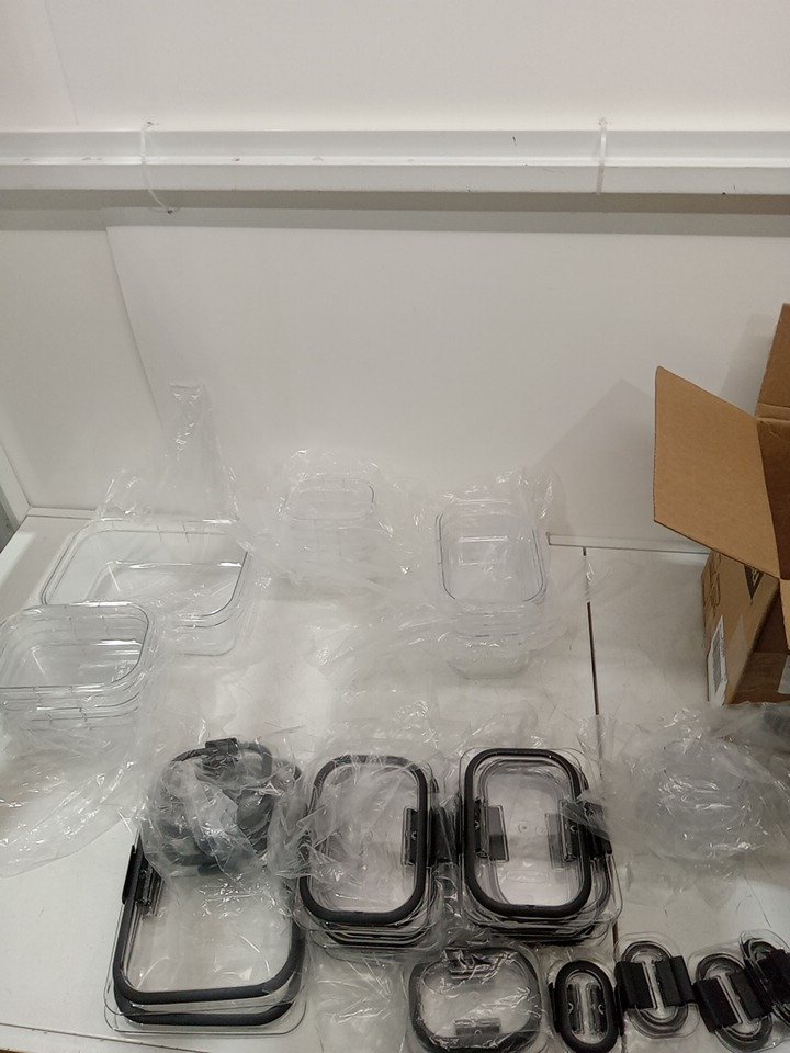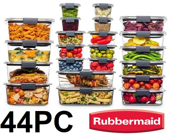 44pc rubbermaid brilliance plastic food storage meal prep containers with air tight snap lids - assorted sizes - clear/grey