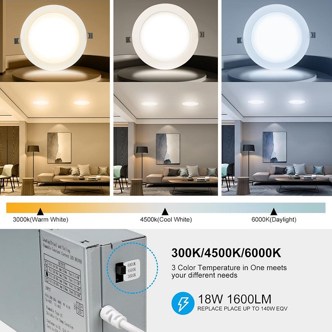 20pk elaruslux ultra thin dimmable 3cct led recessed light with junction box - 3000k/4500k/6000k - 1600lm - 18w eqv 125w - white (model: ELA-7IN-20)