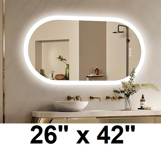 LED WALL MOUNT BATHROOM MIRROR, OVAL - 26" X 42" - SILVER (MODEL: 2642)