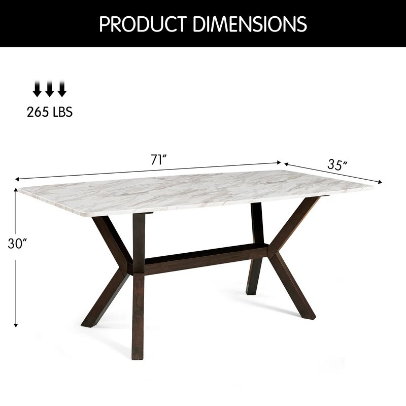 Subrtex gather round style 6-person Marble Dining Table with hardwood x-shaped legs - 71" - brown/white