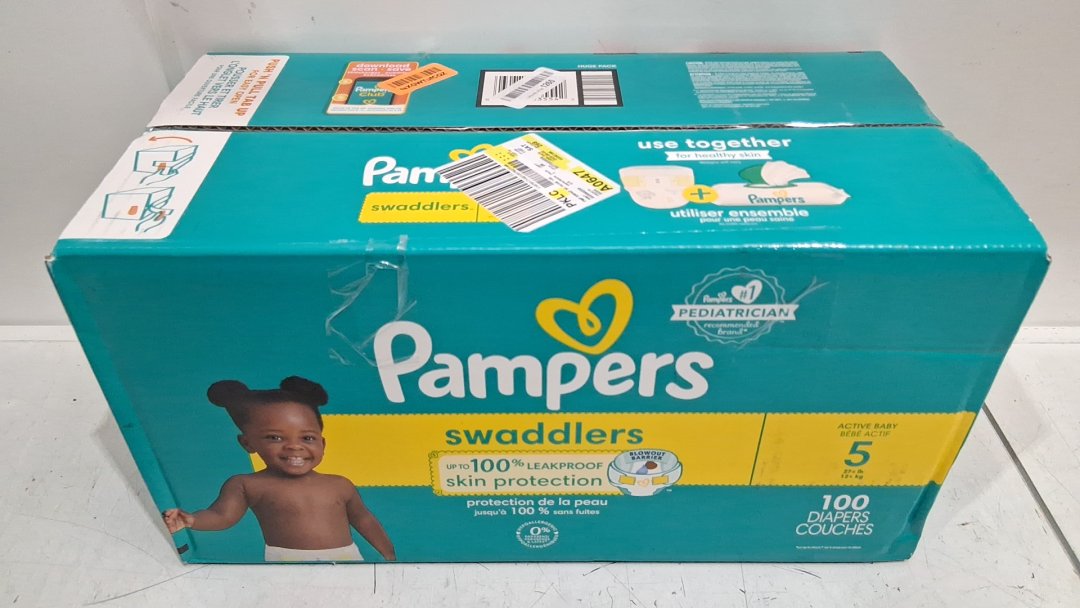 100PK PAMPERS SWADDLERS up to 100% LEAKPROOF BABY DIAPERS - SIZE 5