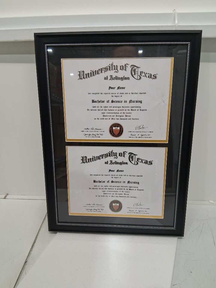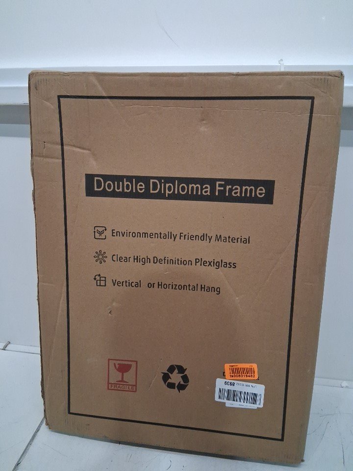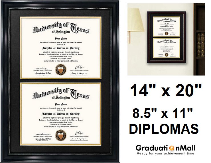 GMFRAMES DOUBLE DIPLOMA FRAME WITH UV PROTECTION with BLACK OVER GOLD MAT - 14" x 20" - 8.5" x 11" diplomas - black/white