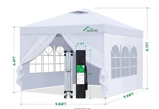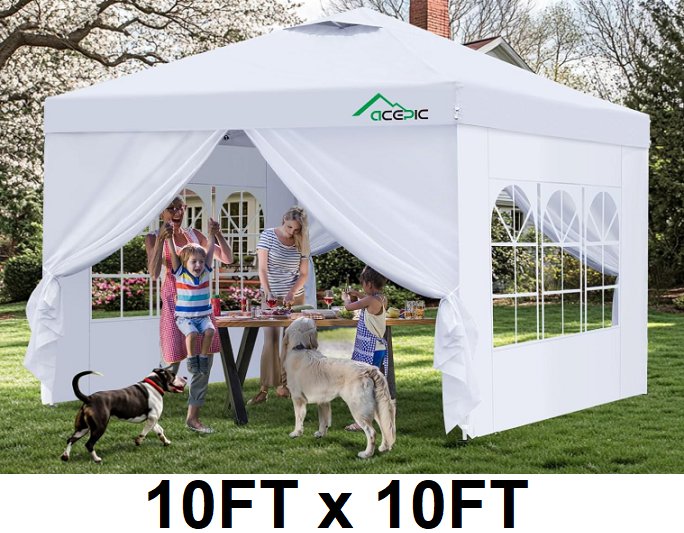 Acepic Instant Portable Canopy Tent WITH 300D Silver-Coating Top - 10FT X 10FT - WHITE (model-Z25-cw-w)