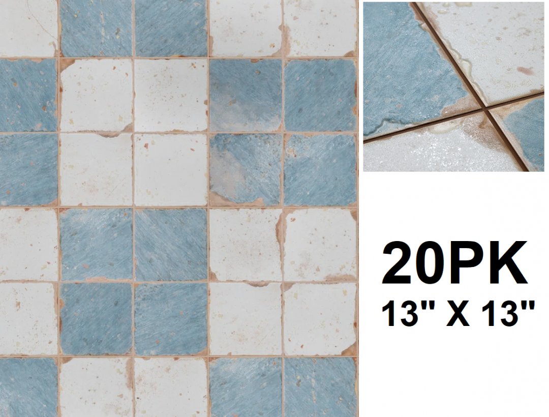 20PK Merola Tile Artisan Ceramic Vintage Wall & Floor Tile with Low-Sheen Glazed Finish, Distressed Aged Effect and Semi-Vitreous Ceramic - 13″ x 13″
