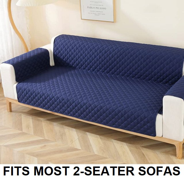 EASY GOING WATERPROOF SOFA COVER FURNITURE COVER FOR PETS & SPILLS, WITH FOAM ROLLERS (FITS MOST 2-SEATER SOFAS) - NAVY BLUE