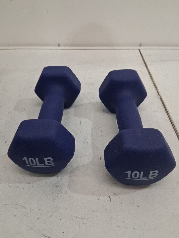 2PK AMAZON BASICS neoprene hexagon free-weight workout dumbbells - 10lbs each/20lbs total - navy blue