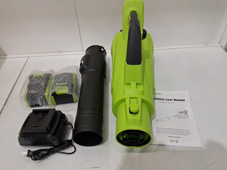 GREENER cordless leaf blower with battries and charger - 21v - green/black - (model: lf-04)