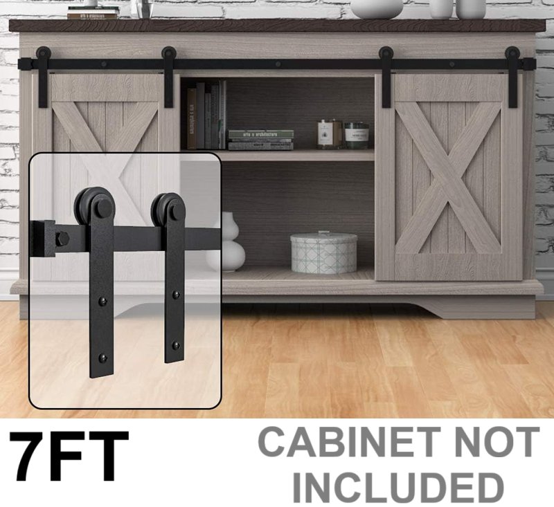WINSOON Super Mini Sliding Door Cabinet Hardware Kit for Double Doors - 7 FT (Cabinet Not Included) - Black (Model: GCM4754)