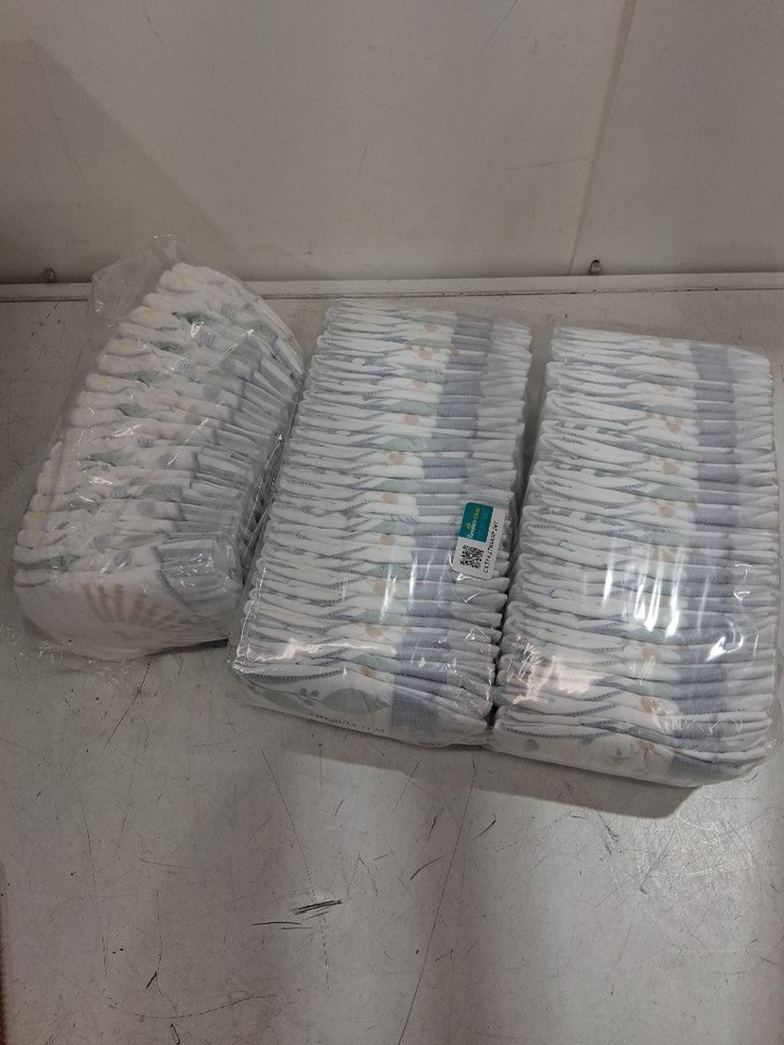 One pack of the item was opened, and 93 diapers were counted as remaining. See photos for reference.