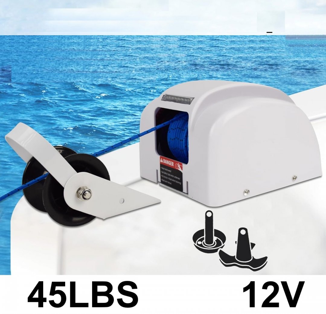 Electric Marine Saltwater Anchor Winch Windlass Kit - 45LBS - WHITE - (MODEL: T10103-45SW)