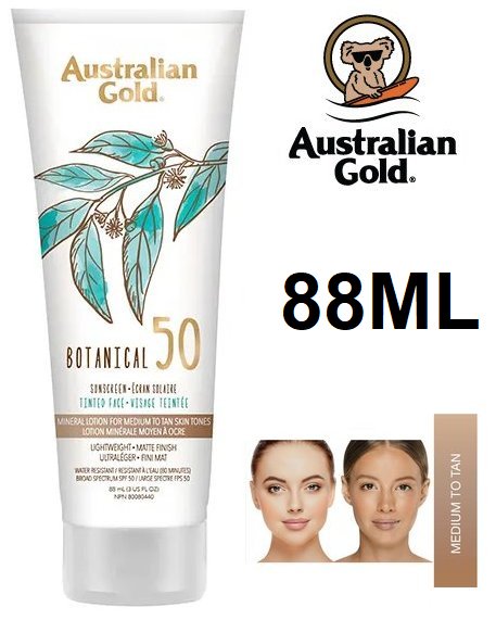 AUSTRALIAN GOLD BOTANICAL TINTED FACE MINERAL SUNSCREEN FOR MEDIUM TO TAN SKIN TONES - SPF50 - 88ML
