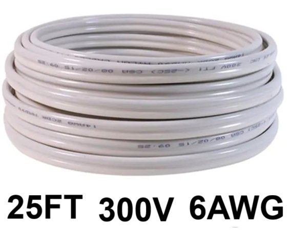 3-cord residential building electrical wire - 6AWG, 300V, 25FT - white