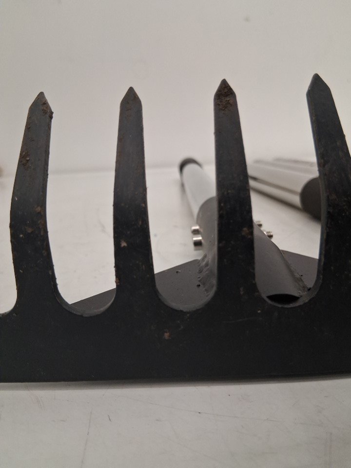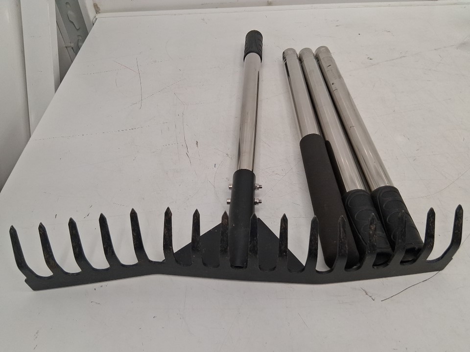 Please note that the item has grass/debris on the rake head. The head also appears to have some slight bends, however, should still be fully usable
