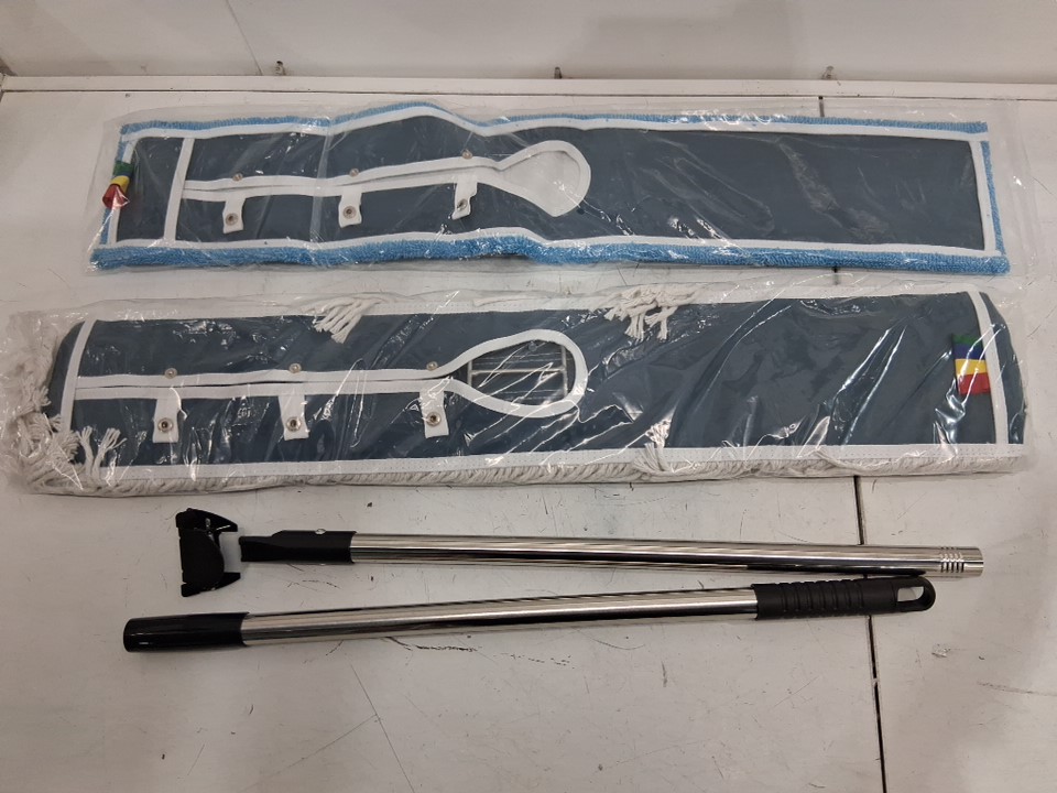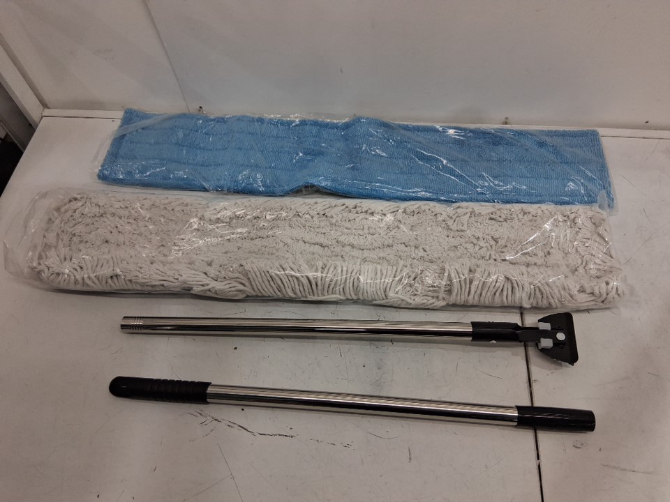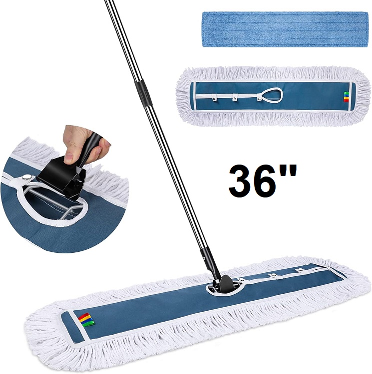 Industrial Flat Commercial Dust Mop with Reusable Pads and expandable Stainless Steel Handle - 36" - blue/silver