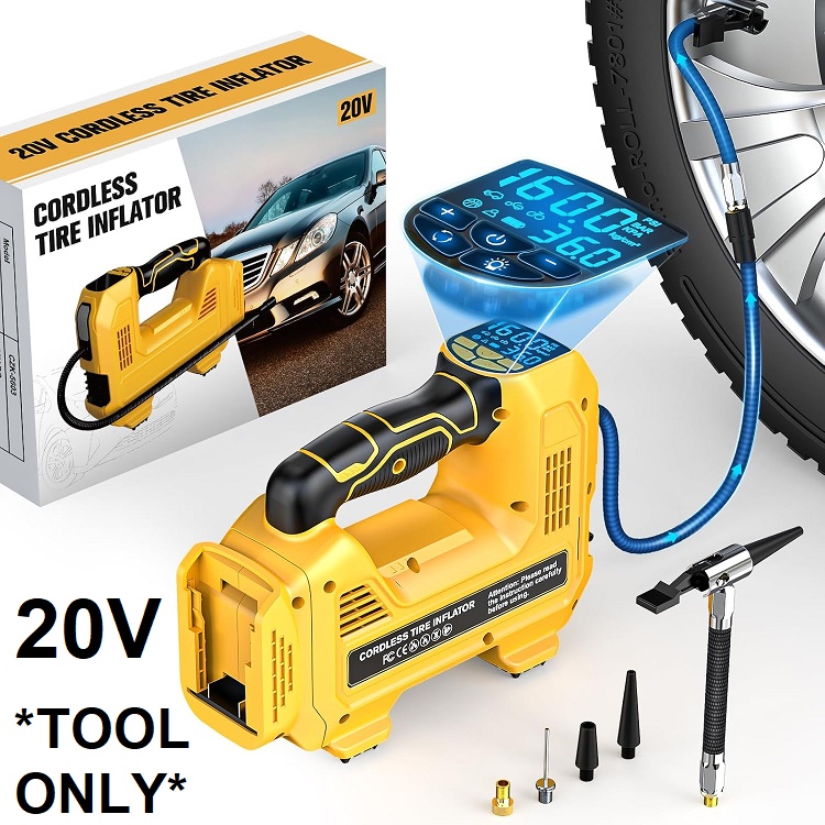 LIVOWALNY Cordless Tire Inflator with Digital Display - Works with 20V Dewalt Batteries - *TOOL ONLY* - Yellow