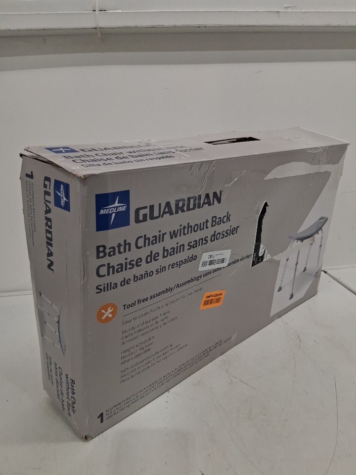 MEDLINE GUARDIAN TOOL FREE ASSEMBLY BACKLESS BATH AND SHOWER CHAIR - 400LB MAX - GREY/SILVER (MODEL: G2-201KRX1)