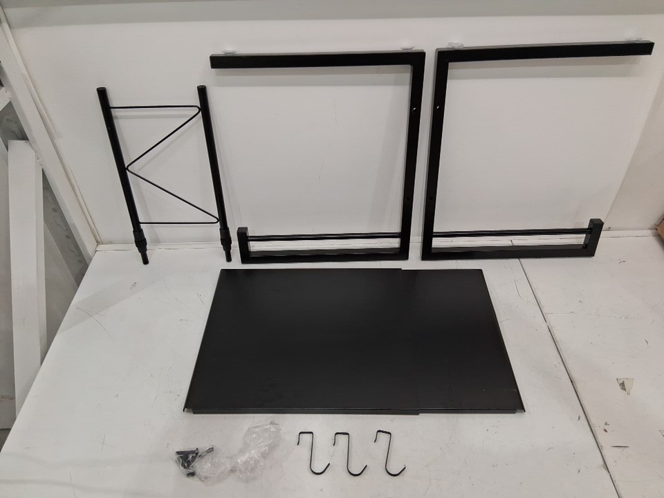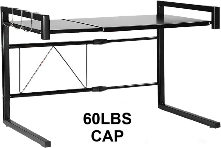 YAQOOT Expandable Microwave Oven Rack with 3 Hooks - 60 LBS Capacity - Black
