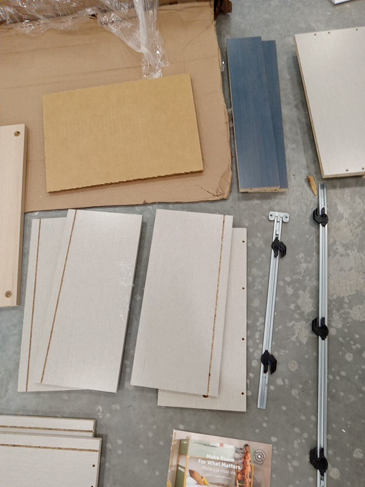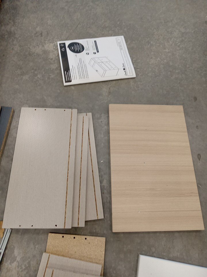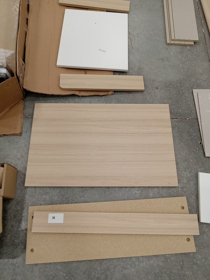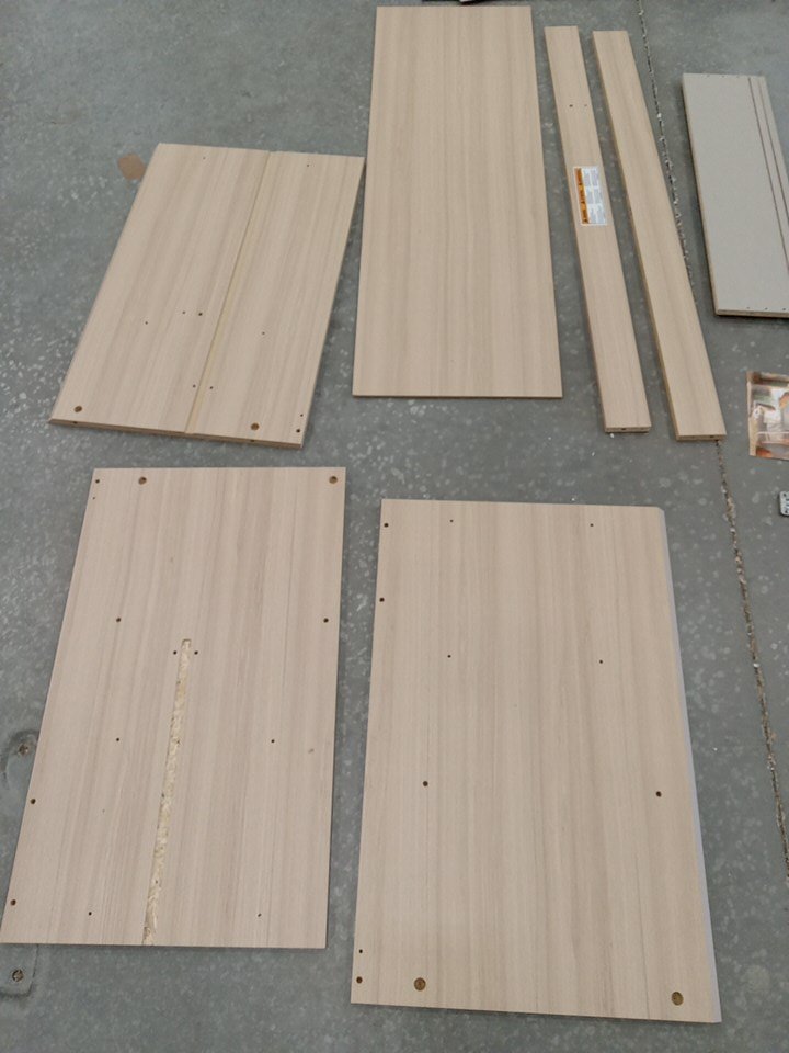 Some minor scuffs/scratches/very minor edge chips on some of the wood pieces as a result from shipping.