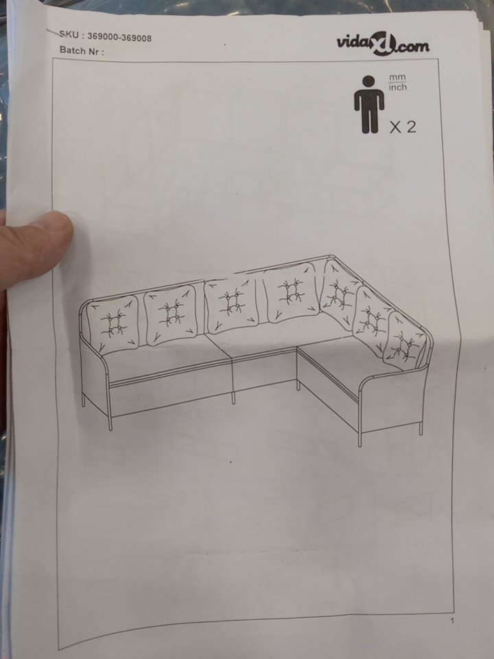 Customer may require additional hardware to build/assemble item. The manual is a bit different from the actual item, while it says there is supposed to be 13 cushions in total, there are only supposed to be 10.