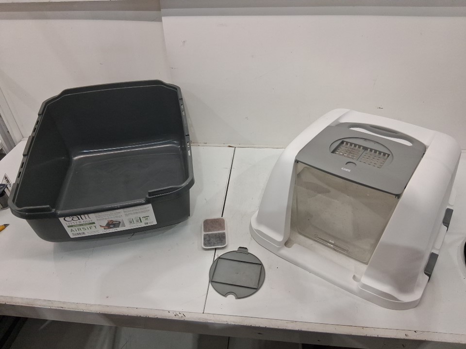 CATIT CLEAN JUMBO HOODED LITTER BOX WITH AIRSIFT AIR FILTER - 22.4" x 18.3" x 19.7" - GREY/white - (model: 50695)