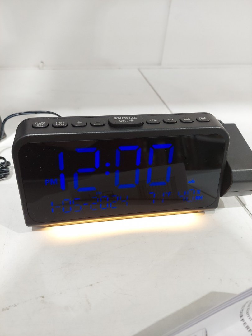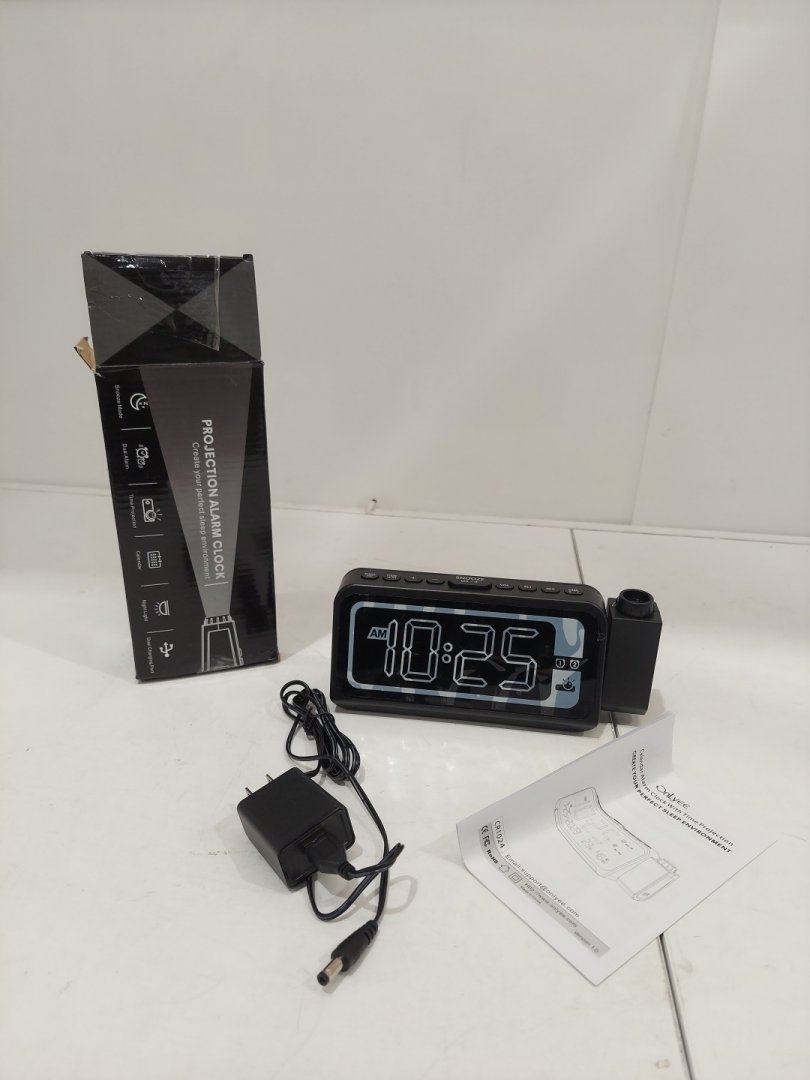 led projection alarm clock with 5-brightness levels & usb-c charge port - black (model: cr1024)