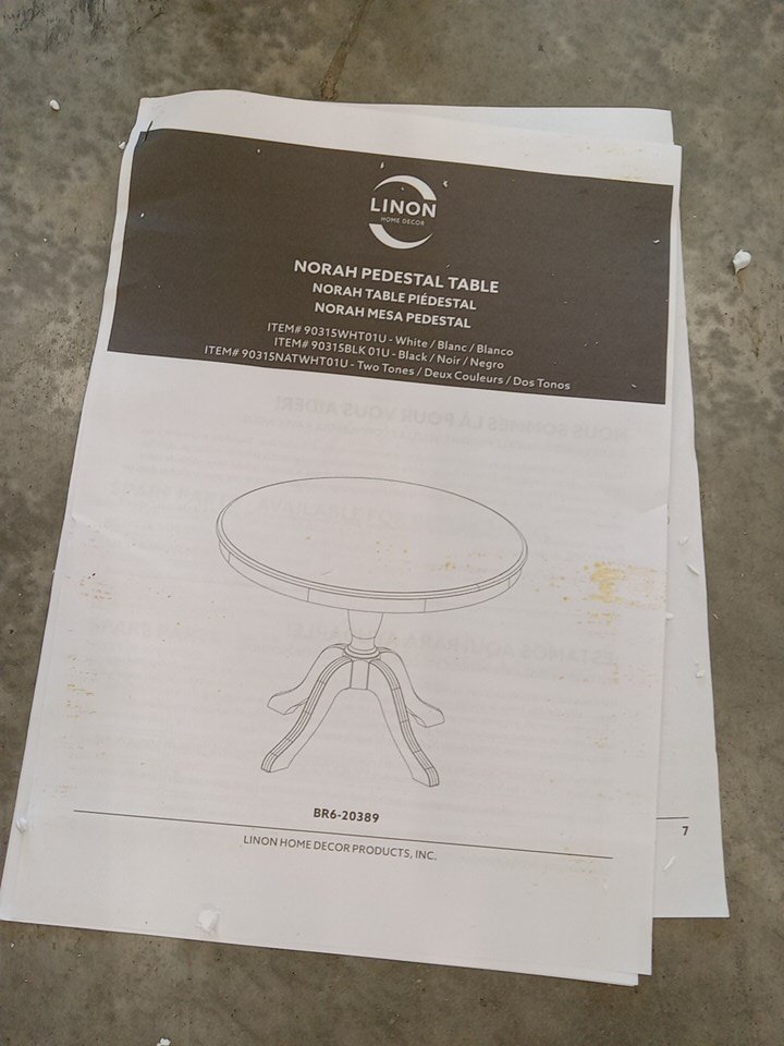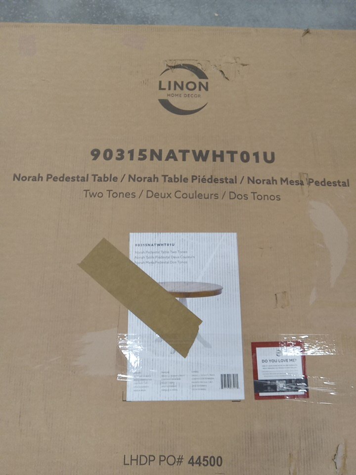 Linon Tobin Collection Norah Pedestal Dining Table - 42" x 42" x 30" - White/Natural - (Model: 90315natwht01u)