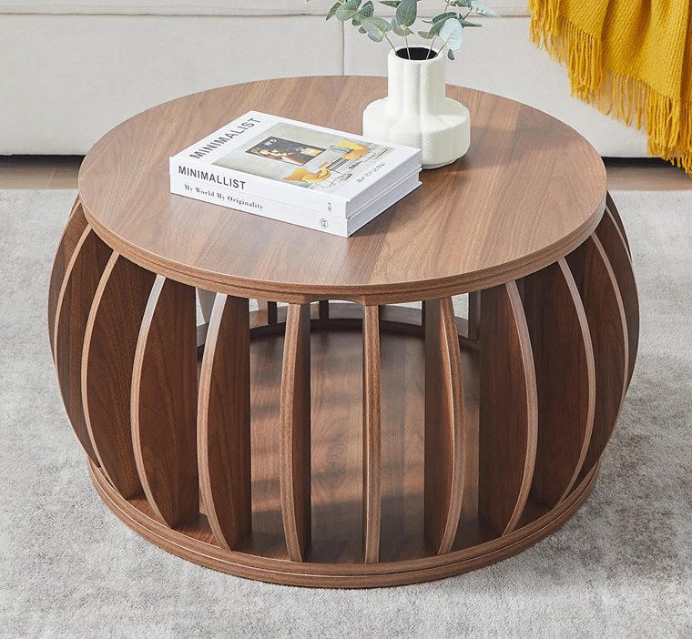 Wrought Studio Carreiro Round Drum Coffee Table - Brown
