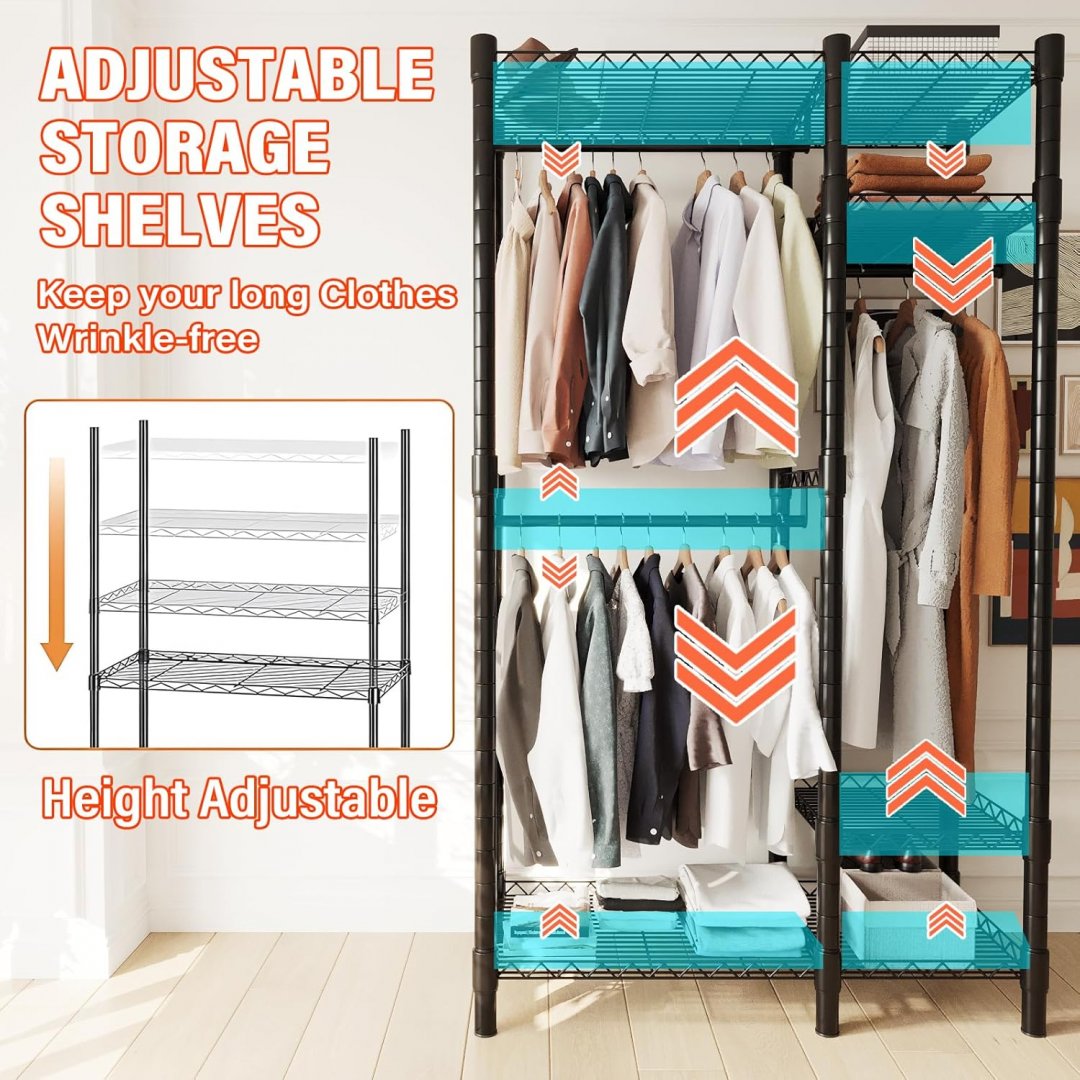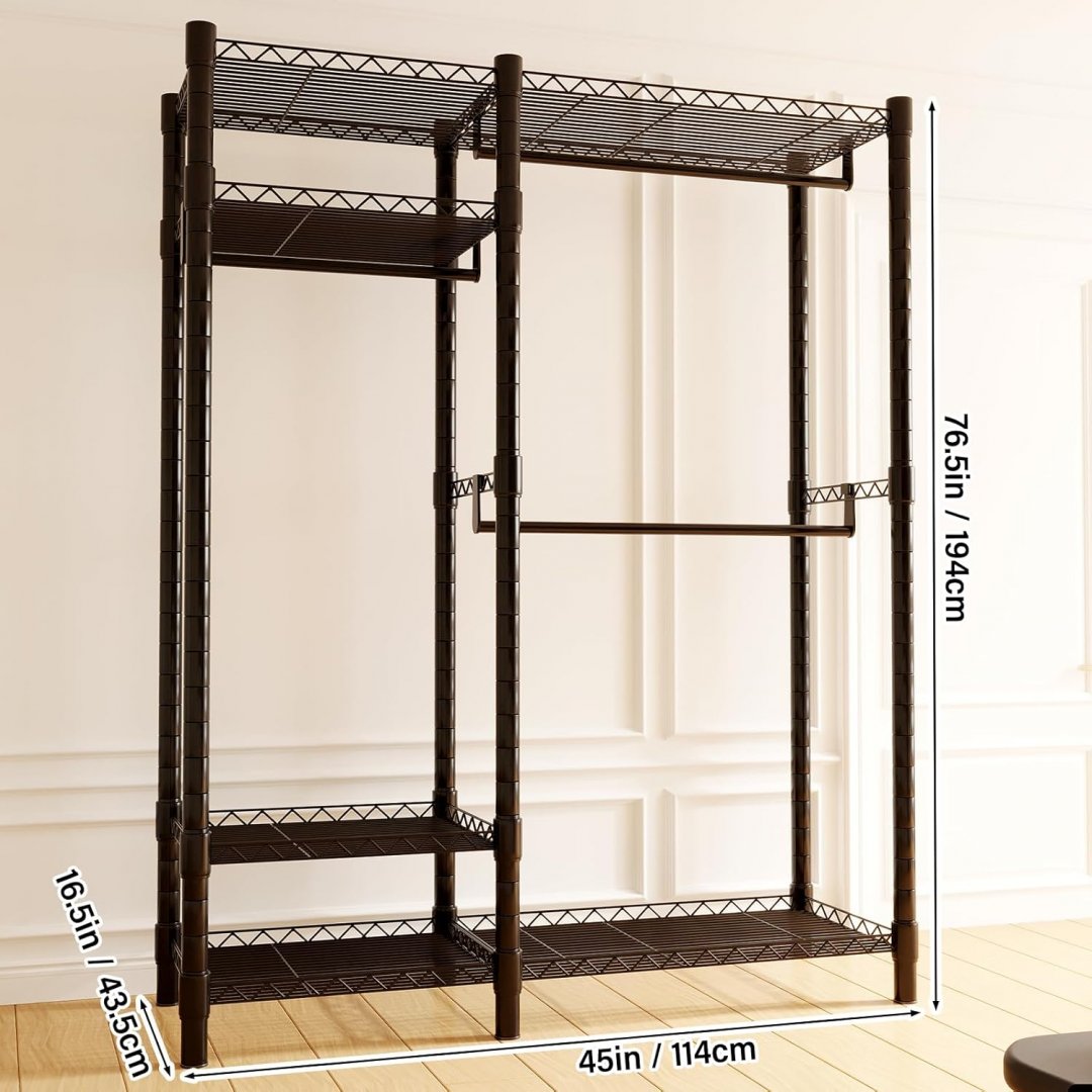 asdjakzp metal garment rack closet organizer with adjustable shelves - 45" x 76" x 16", 750LBS max - black - (model: 0Z01-623-Q4R2)