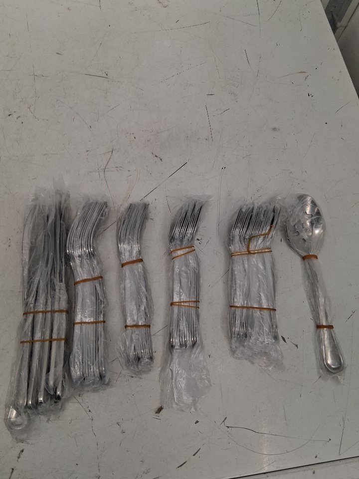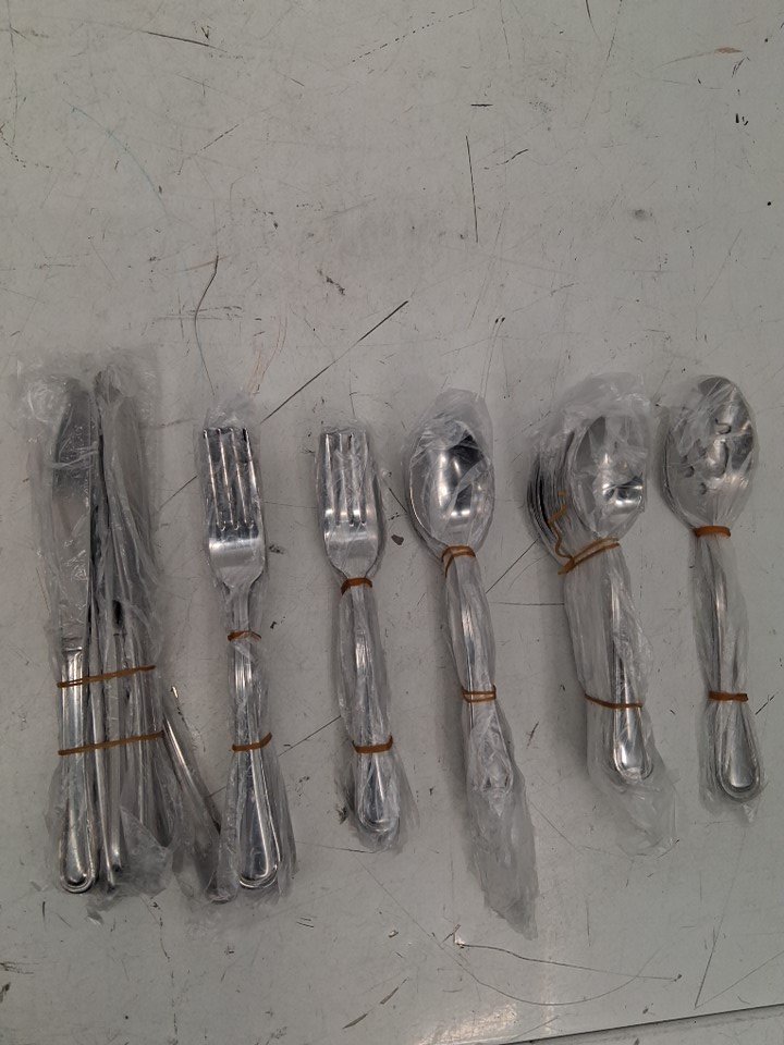 Whats included: 1 Serving Spoon 1 Slotted Spoon 24 Teaspoon 12 Tablespoon 12 Dinner Knife 12 Dinner Fork 12 Salad Fork