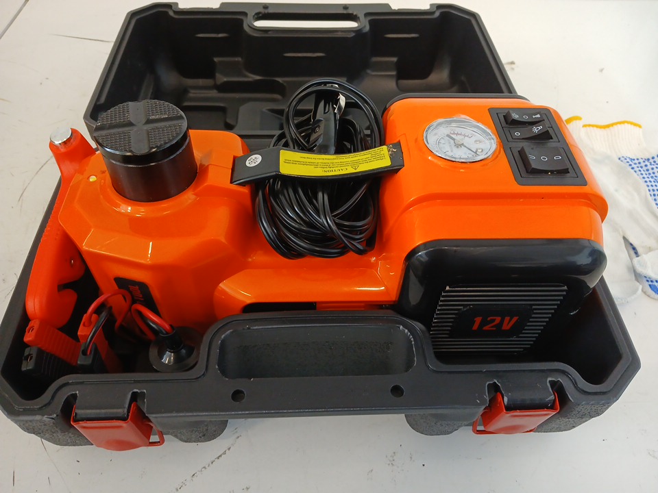VEVOR 3-IN-1 5-TON ELECTRIC HYDRAULIC JACK WITH LED FLASHLIGHT & CARRY CASE , 150PSI MAX, DC LIGHTER POWERED CAR JACK, 12V SCISSOR JACK - ORANGE (MODEL: ZSY01-2)