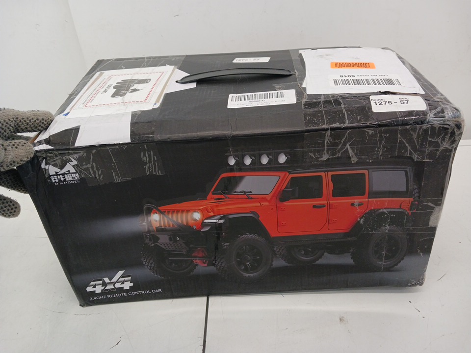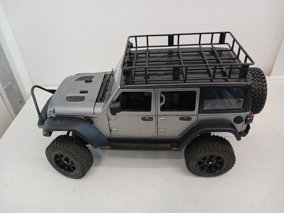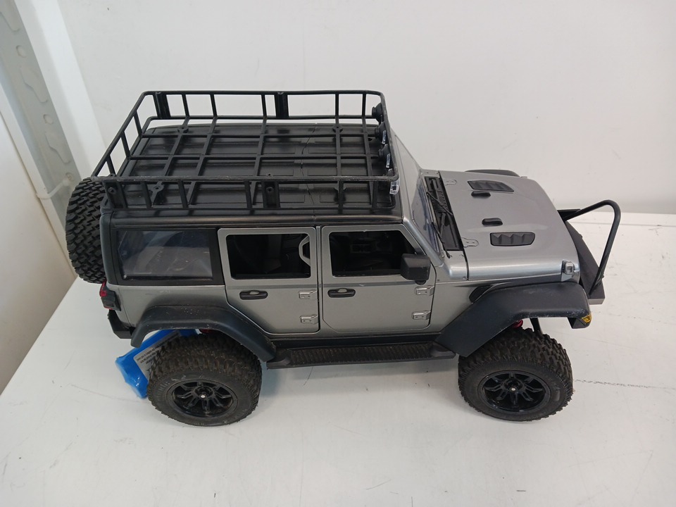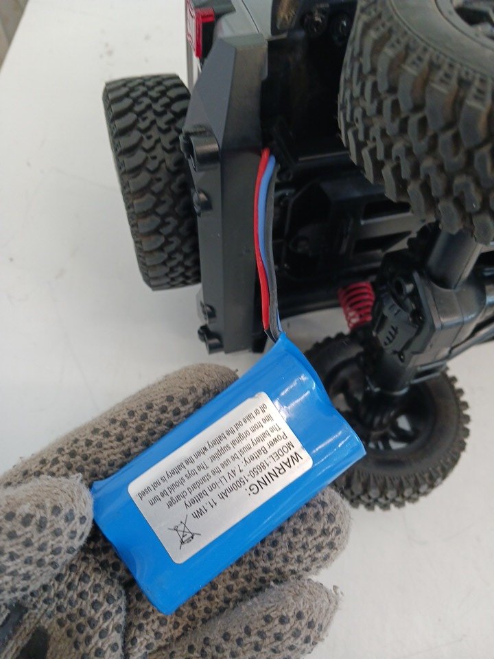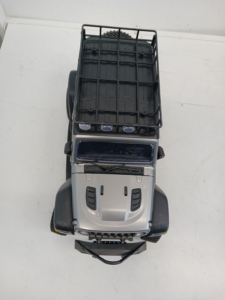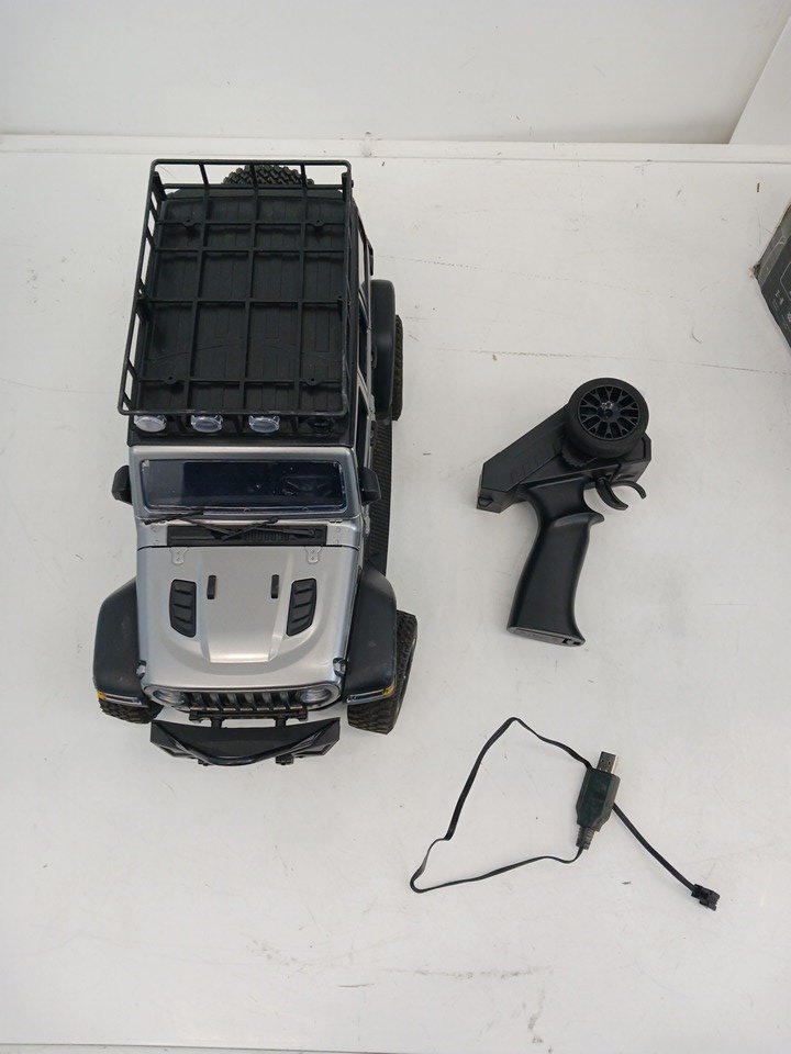The RC does not power on when connected to the included rechargeable battery, even after a full 30-minute charging period. The remote control powers on successfully, as indicated by the blinking status light, confirming that the transmitter is functional. The issue appears to be limited to the vehicle’s power or battery connection. It is possible that the included battery or internal wiring may require inspection or replacement to restore full operational functionality. Cosmetically, the RC car remains in very good condition with minimal wear and no visible damage to the chassis, wheels, or body shell.