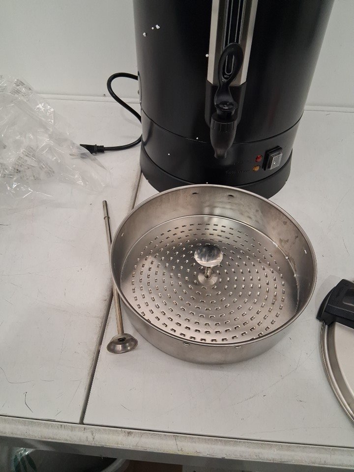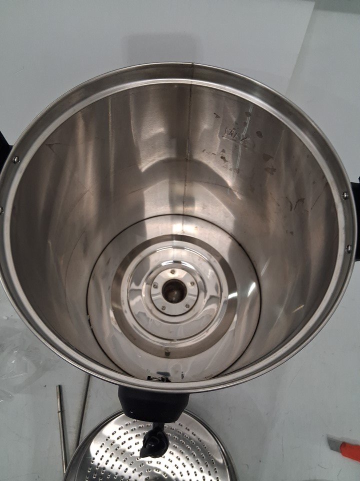 Coffee dispenser has coffee stain on inside, and build up on bottom