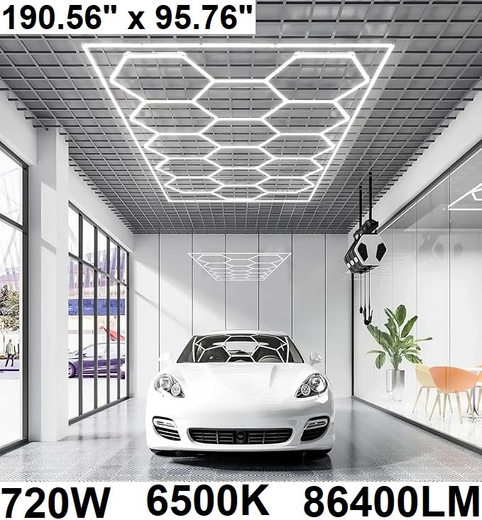 baiyueguang ip54 led hexagonal honeycomb grid car garage light - 190.56" x 95.76" - 720w - 6500k - 86400lm - silver