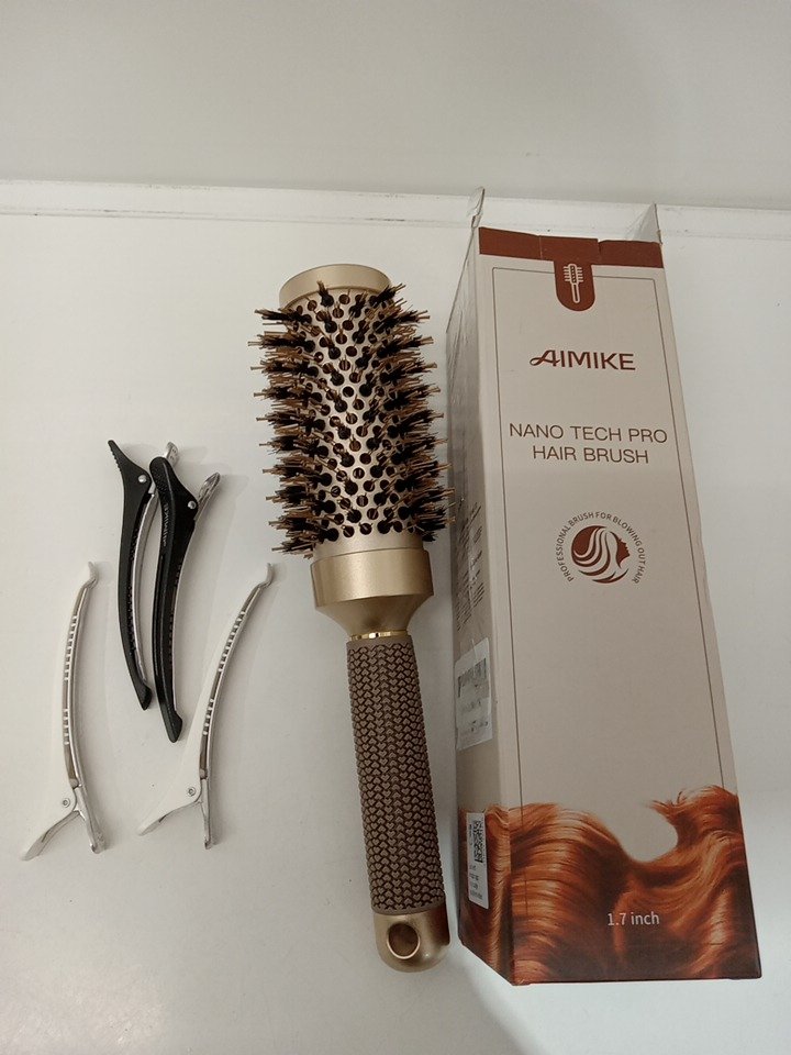 AIMIKE NANO THERMAL CERAMIC IONIC TECH HAIR ROUND BRUSH WITH BOAR BRISTLES AND 4 HAIR CLIPS - 2.1" WITH BRISTLES - GOLD