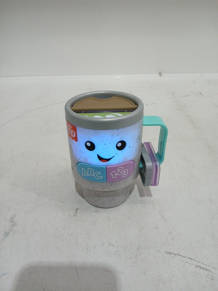 KID'S FISHER-PRICE LAUGH & LEARN WAKE UP AND LEARN COFFEE MUG WITH MUSIC AND LIGHTS- 6-36 MONTHS- GREY(MODEL: HWY43)