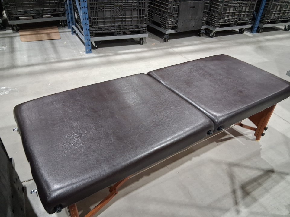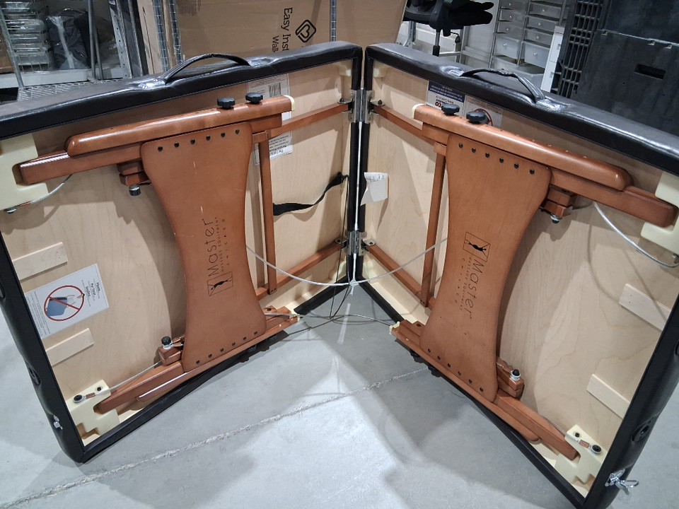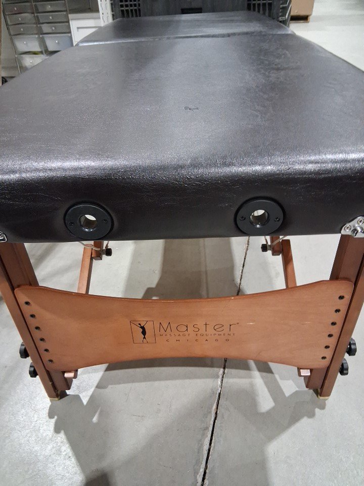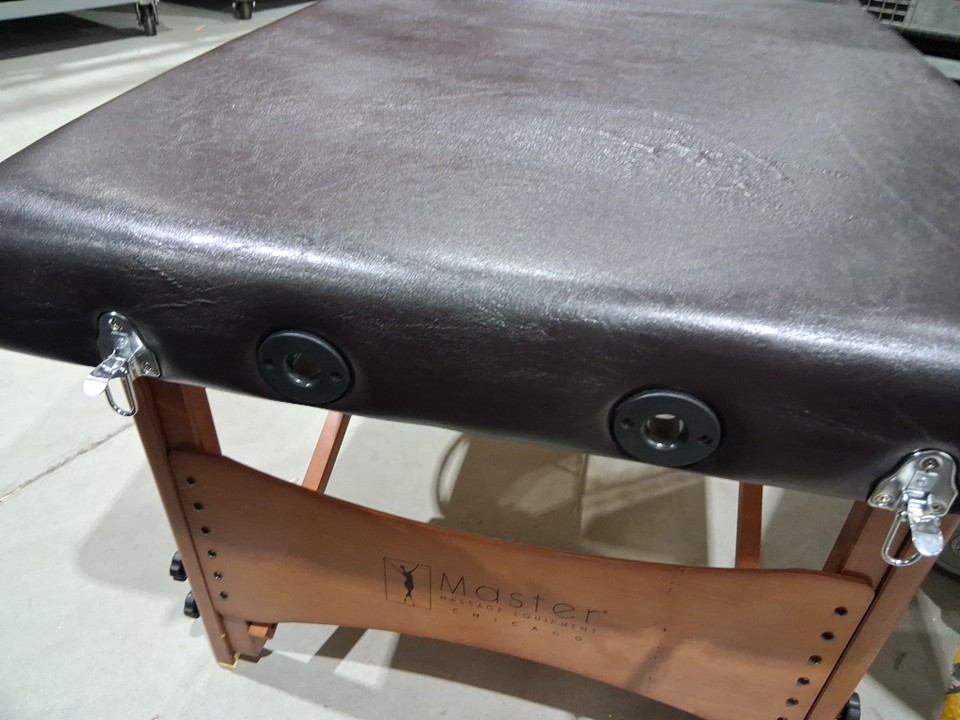 Item has scratches, a small hole and distress to the cushions and handles from prior use (see photos) Item is missing carrying case and headrest- can be replaced on amazon.