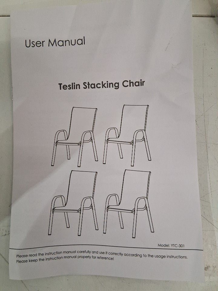 4PK Teslin Outdoor Garden Stacking Patio Chairs - Grey